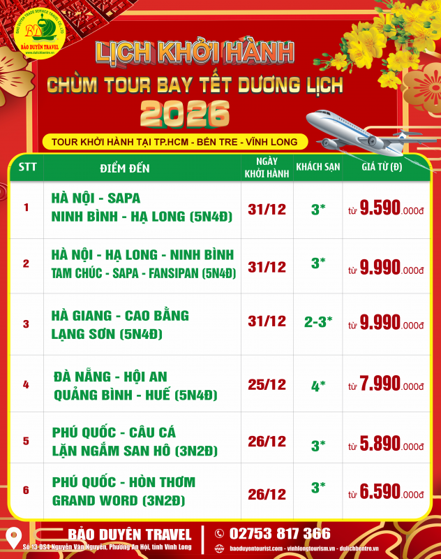 LỊCH KHỞI HÀNH