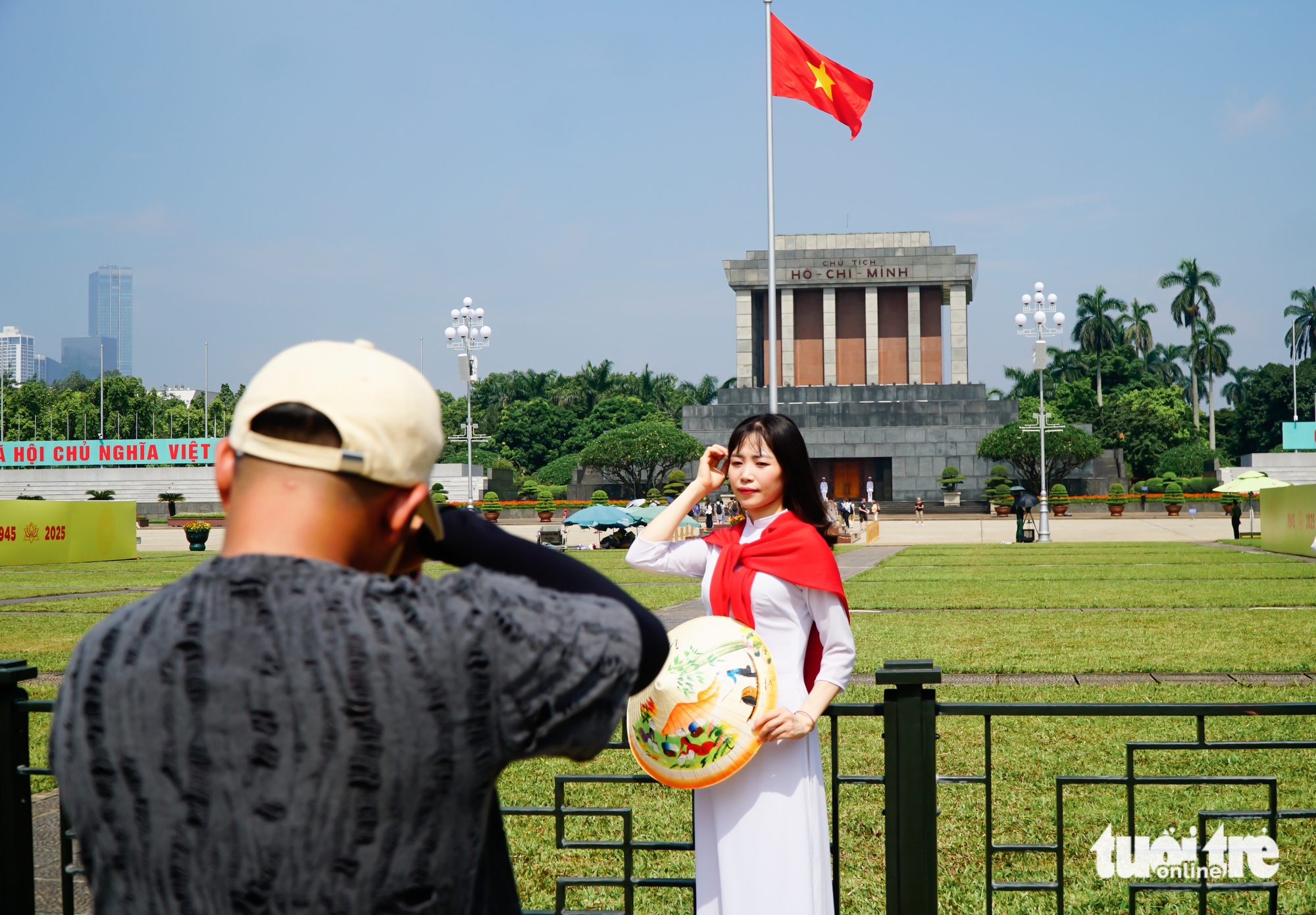 Quảng trường Ba Đình là nơi nhiều bạn trẻ đến chụp ảnh mừng đại lễ – Ảnh: NGUYỄN HIỀN